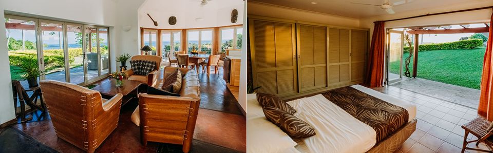 Malaqereqere's four architecturally designed Villas harmonize traditional style and materials with modern comforts to create the perfect setting for your holiday. The decor is restful, featuring lots of native timber, ceramic tiles and sumptuous fabrics. Ceiling fans and air conditioned bedrooms keep you cool and comfortable while large picture windows and French doors provide light and air.