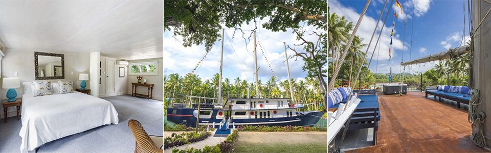 Experience a truly unique holiday adventure at Savasi by staying aboard a 140ft, three-masted schooner moored permanently ashore beside the turquoise blue waters of Savasi Island's marina.