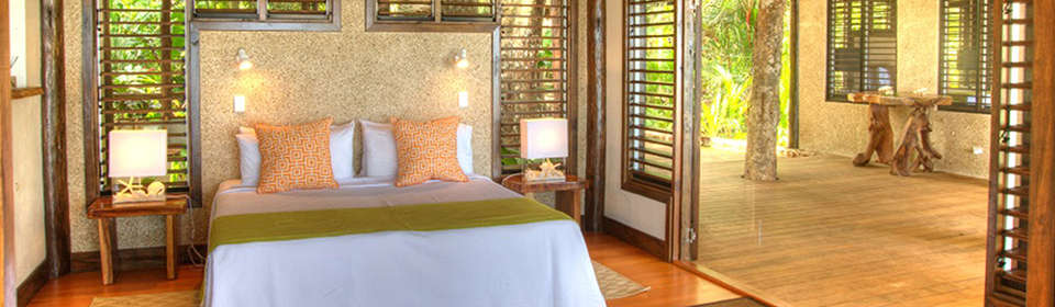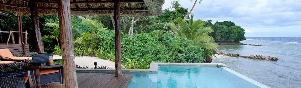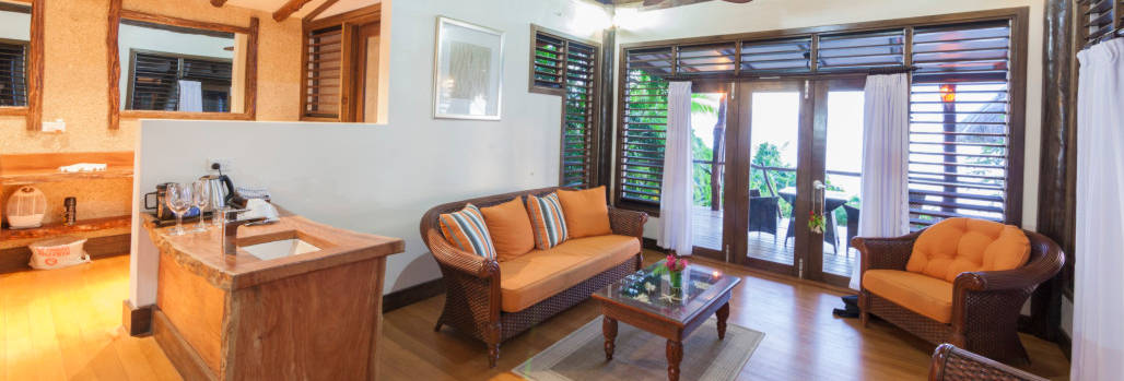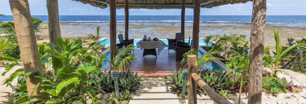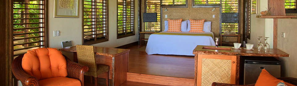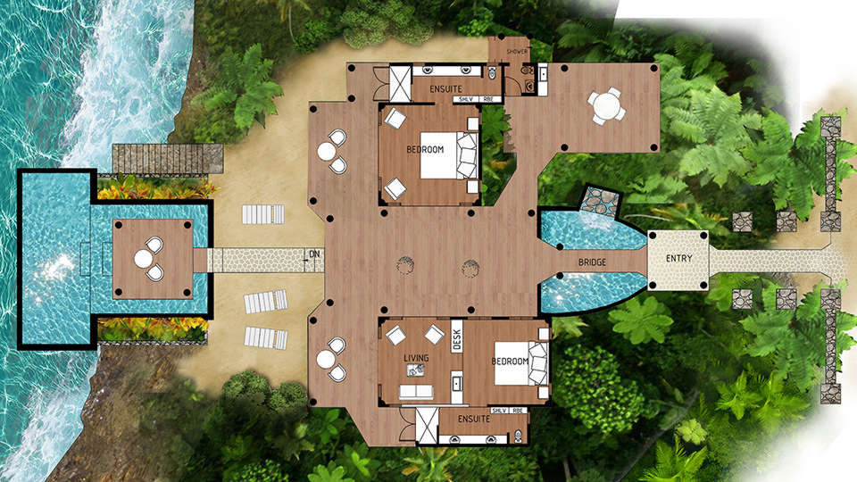 The two-bedroom Coral Villa reveals the unique and charming Fijian inspired architectural features of a style which depends on nature and blends beautifully into it. The bedrooms are set between an open-air atrium with water features and bright and balmy outdoor spaces creating a harmonious indoor-outdoor tropical style living.